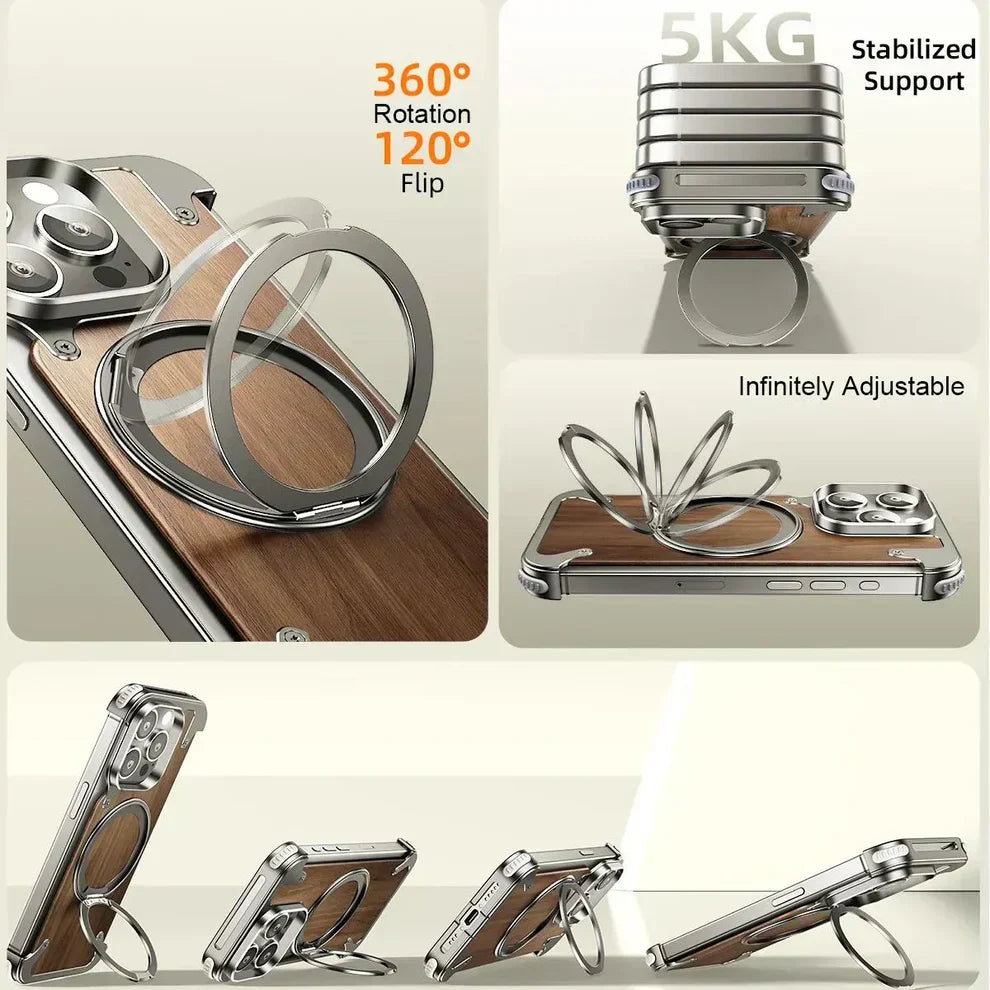 The Rustic Solid Wood Metal MagSafe Case combines the durability of solid wood with the strength of metal to create a phone case that's both stylish and robust. This case features a unique design, with a MagSafe-compatible structure that allows for easy wireless charging and secure attachment of MagSafe accessories.